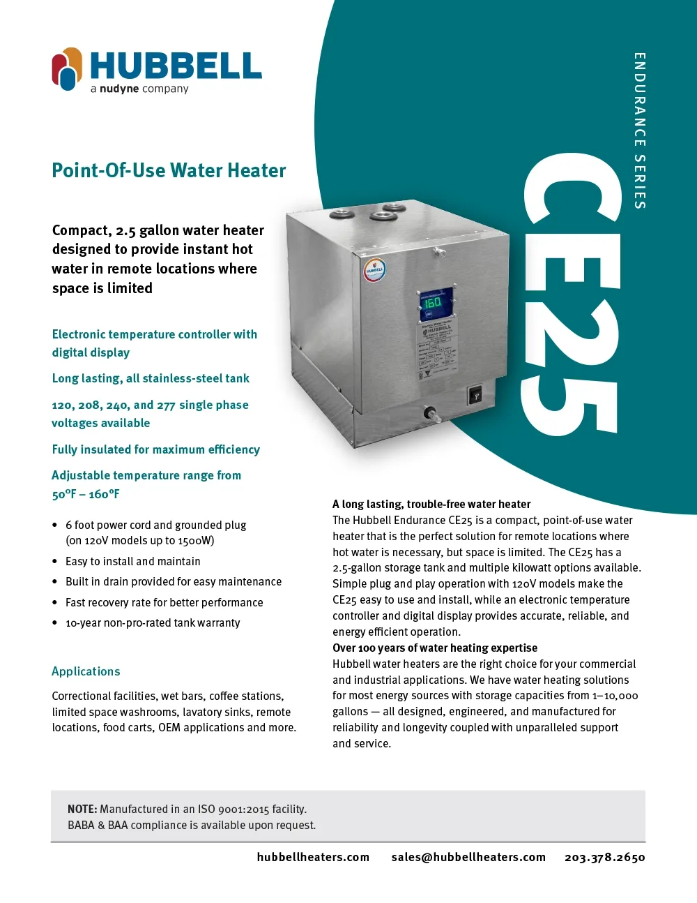 Compact Point of Use Electric Water Heater | Hubbell Heaters