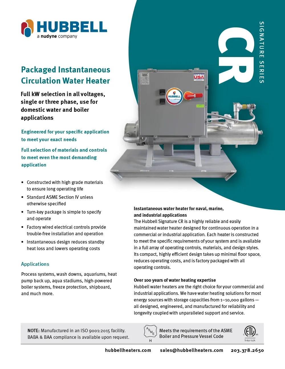 Hubbell has a water heater for almost every application. Take a look at other options.