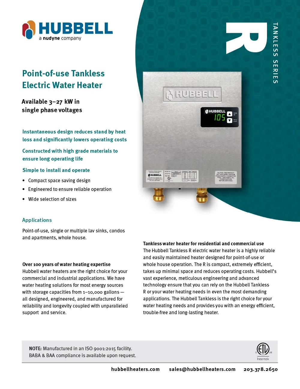 Hubbell has a water heater for almost every application. Take a look at other options.
