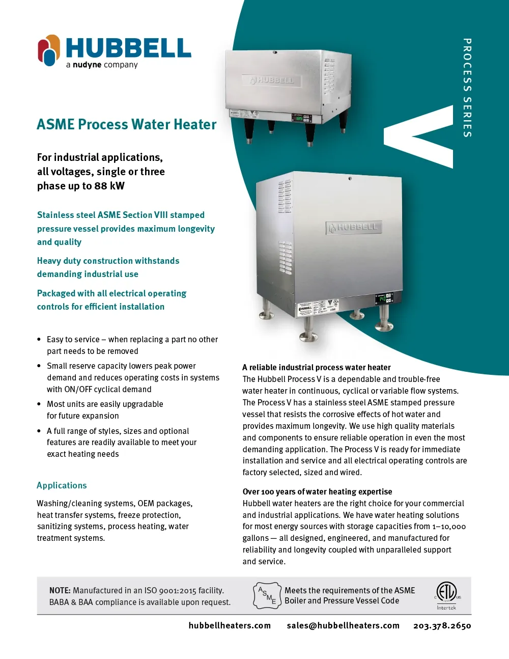ASME Process Water Heaters | Hubbell Heaters